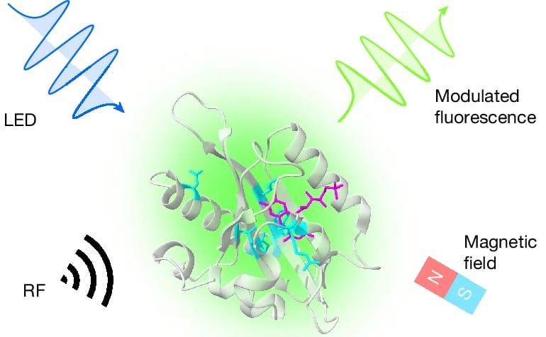 Scientists engineered fluorescent proteins to turn them into quantum sensors and used them to localize cells with magnetic fields. Image credits: Nature.