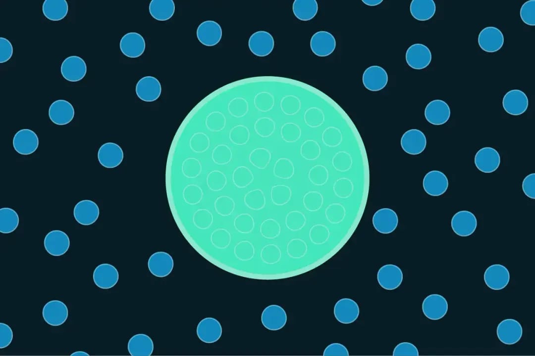 Liquid liquid phase separation can create dense droplets in a more diluted buffer. Image from Labbot.bio